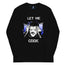 Let him cook! A casual long sleeve shirt with a comfortable fit featuring a graphic of a man in burning thought.